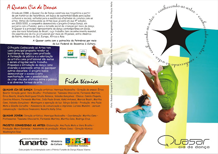 Criada em 1988, a Quasar Cia de Dança construiu sua trajetória a partir de um histórico de resistência, em busca de sustentabilidade para iniciativas que sempre tiveram interface com discussões sociais que, em seguida, foram se transformando em ações voltadas para populações excluídas do convívio com as artes. Antes do Conhecendo as Artes, em 2000/2001, a companhia desenvolveu o projeto Criança Dança, em parceria com a Fumdec, para a inclusão social de crianças por meio da dança. A Quasar é a principal representante da dança contemporânea em Goiás, uma das mais talentosas do Brasil, cujo trabalho tem reconhecimento mundial.